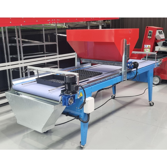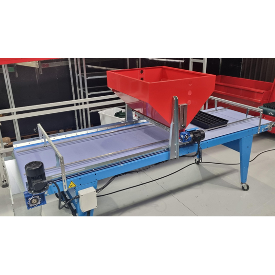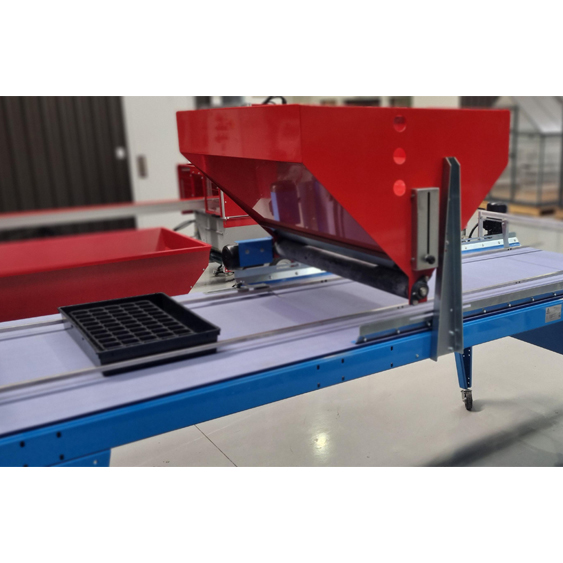Using a vibrating seed plate with pneumatic control, the machine distributes seed evenly across trays while a conveyor belt with electronically adjustable speed moves trays smoothly through the sowing process. This combination allows growers to fine tune seeding rates and tray throughput to suit different seed types and production volumes.