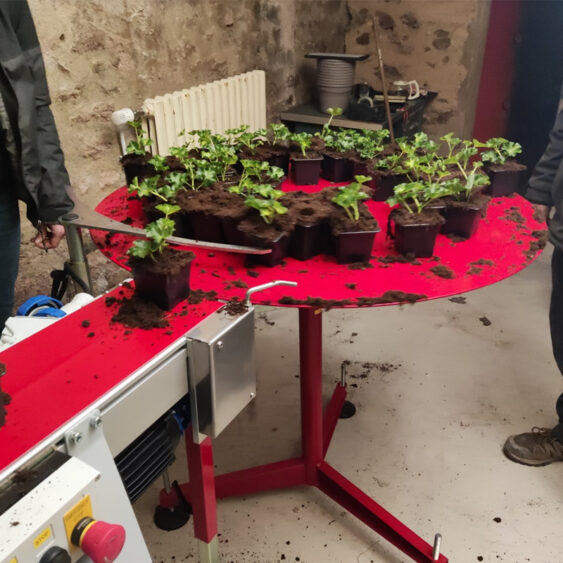 The Da Ros Pot Storage Rotating Table is designed for the temporary collection and buffering of pots during nursery production.