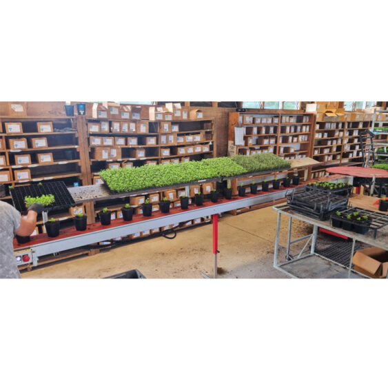 - 3m pot take-off conveyor with 1200mm tray holder