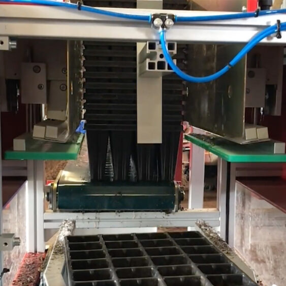 The Da Ros Destacker A5-1 is an electronically controlled denester designed to automatically separate and feed thermoformed trays onto a conveyor belt, including shuttle trays, seedling trays and pots. Ideal for nurseries, it reduces manual handling and ensures a smooth, consistent tray supply to downstream equipment and staff.