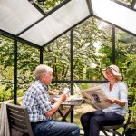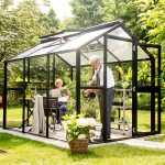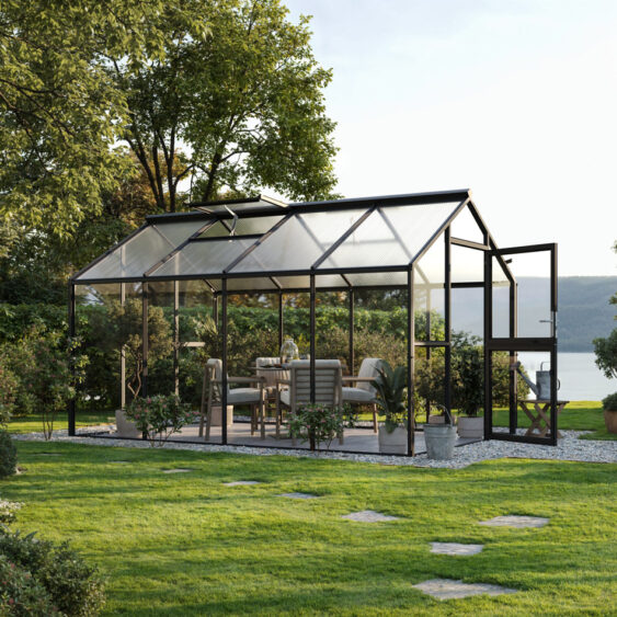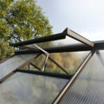 Harvest fresh fruit and vegetables all year round with the Eclipse Glasshouse. Crafted in Germany for premium quality, the Eclipse Glasshouse is similar to the popular Solara model. In addition to the roof windows with automatic window openers, the Eclipse models also include a lockable split door. When open, the door securely affixes to the glasshouse via strong magnets, creating excellent ventilation and climate control. This glasshouse has a very spacious footprint and a generous eave height, making it ideal for medium to large gardens. The Eclipse offers enough space for an idyllic outdoor retreat, or a high-performing glasshouse to maximise crop yields and plant quality – all year round.