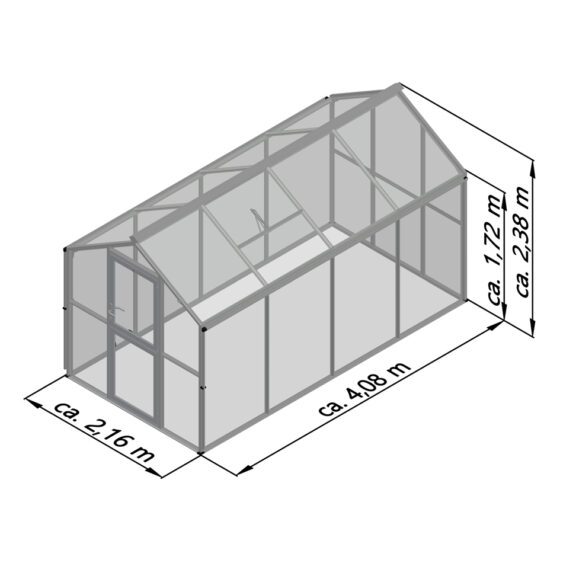 Eclipse Small Glasshouse II 2.73m x 2.08m, two windows, 8.41m2 footprint 16-ECLGLAII