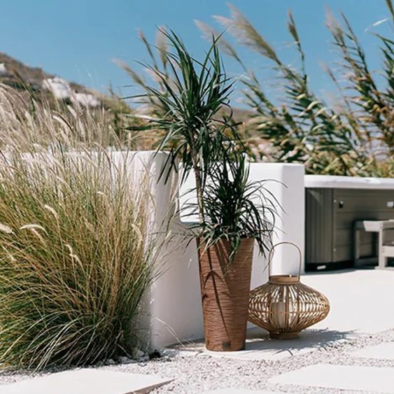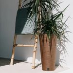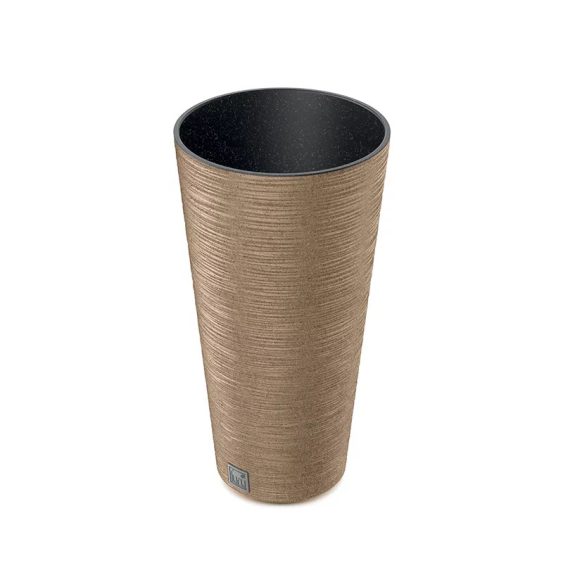This smart-looking slim decorative pot has an earthy appearance to provide a bohemian vibe to your settings. It is ideal for shelves, tabletops and floor displays. The slim pot contains up to 33% of natural wood. Two height options allow you to group them together for interesting displays.
