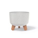 Designed with an earthy appearance to add warmth and modern styling to your spaces. Display the different colours and sizes together for ultimate effect. This smart, low profile pot contains up to 33% natural wood, with wooden-looking legs to elevate your plants.