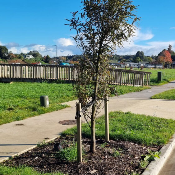 Hardwood Stakes made of durable, chemical-free NZ Eucalyptus. The pencil-point tips make it easy to insert into all applications. Ideal for tree-planting in roadside and urban applications.
