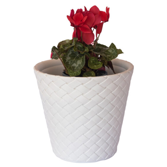 The Havelock Decorative Cover Pot is inspired by lattice work, handmade traditional ceramics and European design.