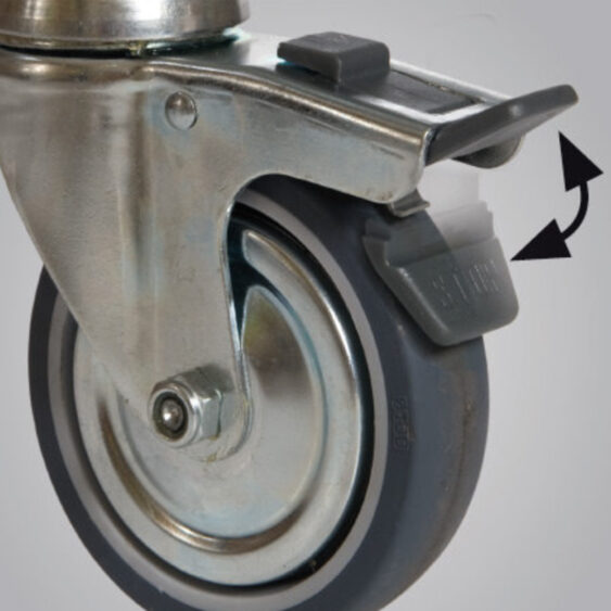 • 2 swivel castor wheels and 2 with brakes, diameter 100mm.