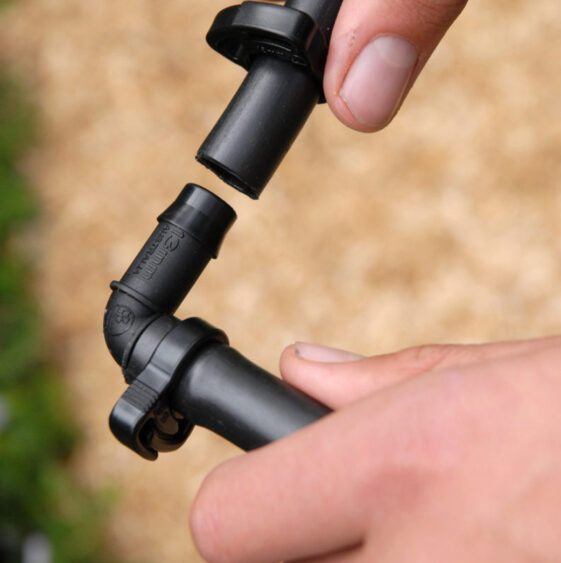 Lateral Elbows for connecting poly pipe and hose at a 90° angles. Ideal for home gardens, landscaping and professionally installed irrigation systems.