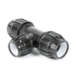 The Medium Reducing Tee is a compression fitting for MDPE pipe with a smart sealing system that uses a tapered plastic V-sealing ring instead of a rubber O-ring, allowing for fast and easy assembly with maximum safety.