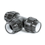 Metric Compression Tees are used to connect 3 lengths of poly piping of the same size in a T configuration. When installed correctly, this quality piece is will not leak. Full range of sizes available from 20mm to 110mm.